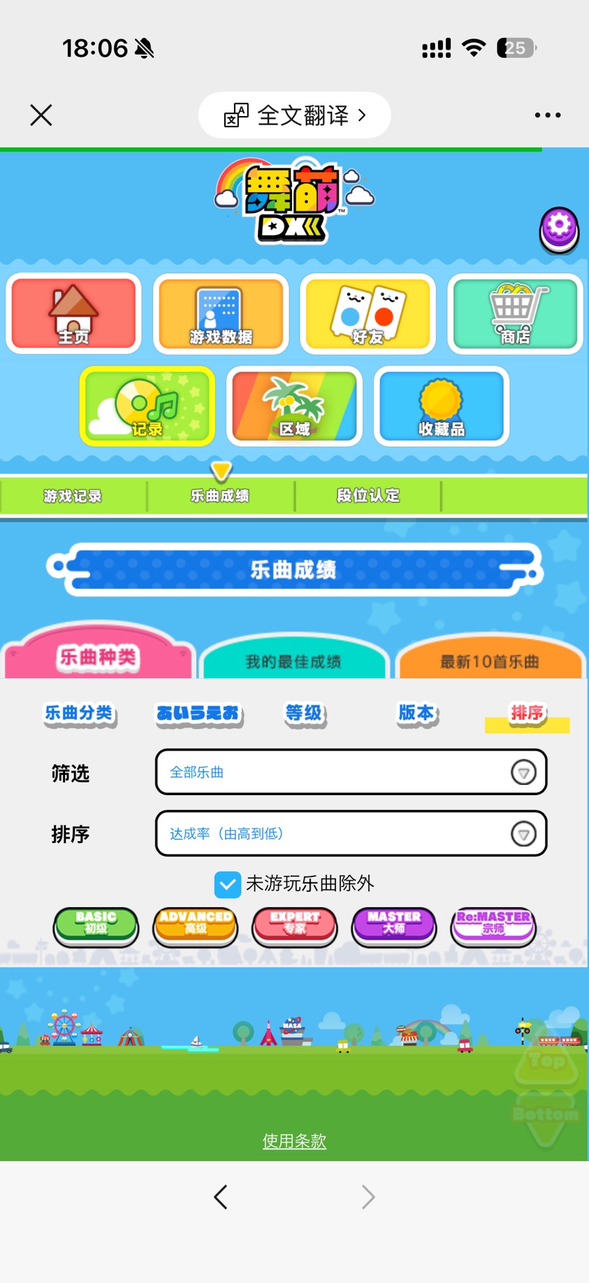 打开手机微信,进入公众号,依次点击 记录 -> 乐曲成绩 -> 排序,依次点击六个等级(如果无需导入某等级可以不点),并等待网页加载完成。