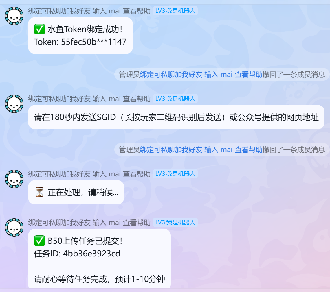 您可以加入 QQ 官方群(1072033605)后,使用"mai绑定水鱼"命令进行更新。